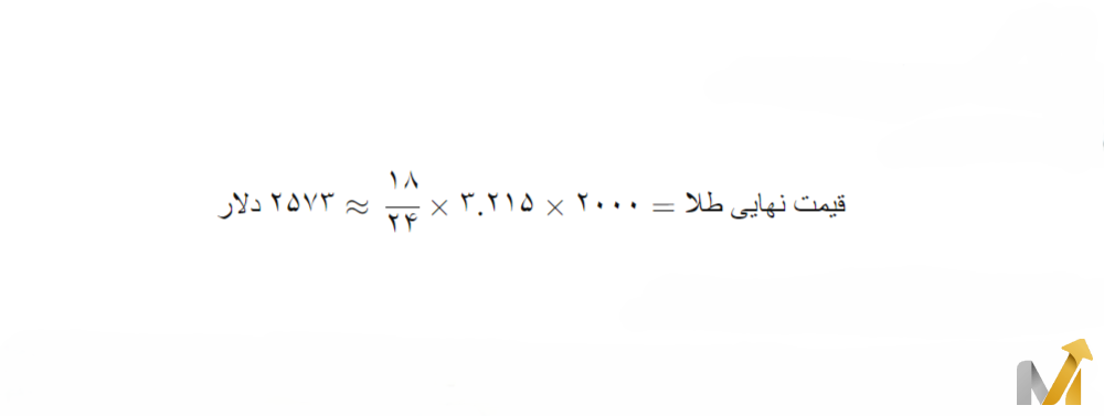 به عنوان مثال، اگر قیمت جهانی طلا ۲۰۰۰ دلار به ازای هر اونس باشه و شما یک گردنبند ۱۰۰ گرمی با عیار ۱۸ بخرین: